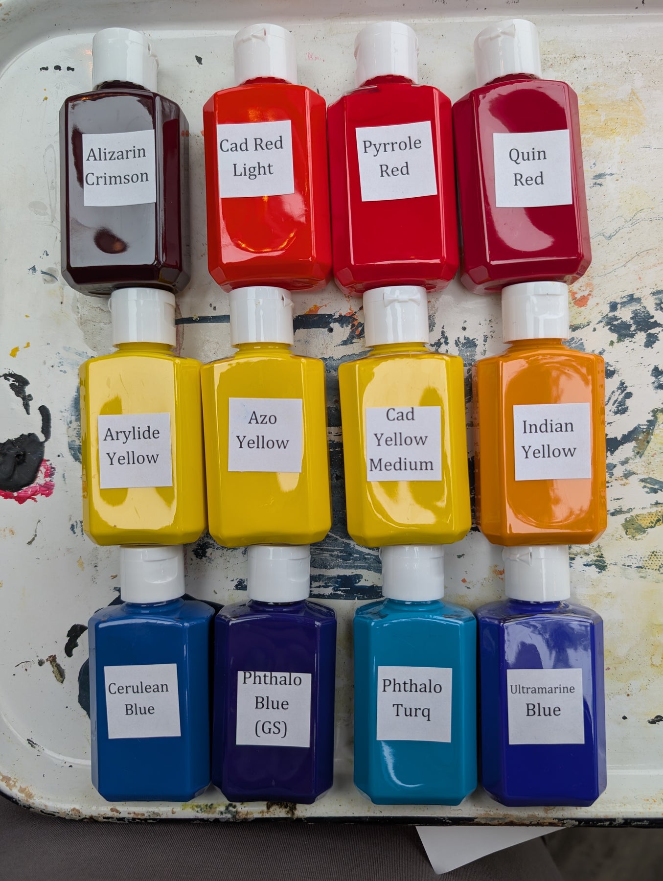 These are all Nova Color acrylic paint poured for you into 2 ounce bottles.